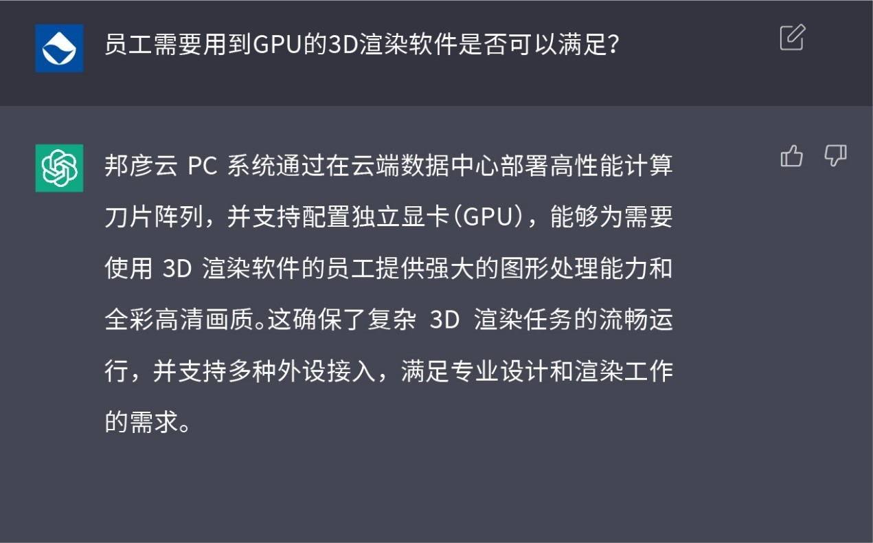 肯定的,邦彥云PC系統(tǒng)通過在云端數(shù)據(jù)中心部署高性能計(jì)算刀片陣列,并支持配置獨(dú)立顯卡(GPU),能夠?yàn)樾枰褂?D渲染軟件的員工提供強(qiáng)大的圖形處理能力和全彩高清畫質(zhì)。這確保了復(fù)雜3D渲染任務(wù)的流暢運(yùn)行,并支持多種外設(shè)接入,滿足專業(yè)設(shè)計(jì)和渲染工作的需求。