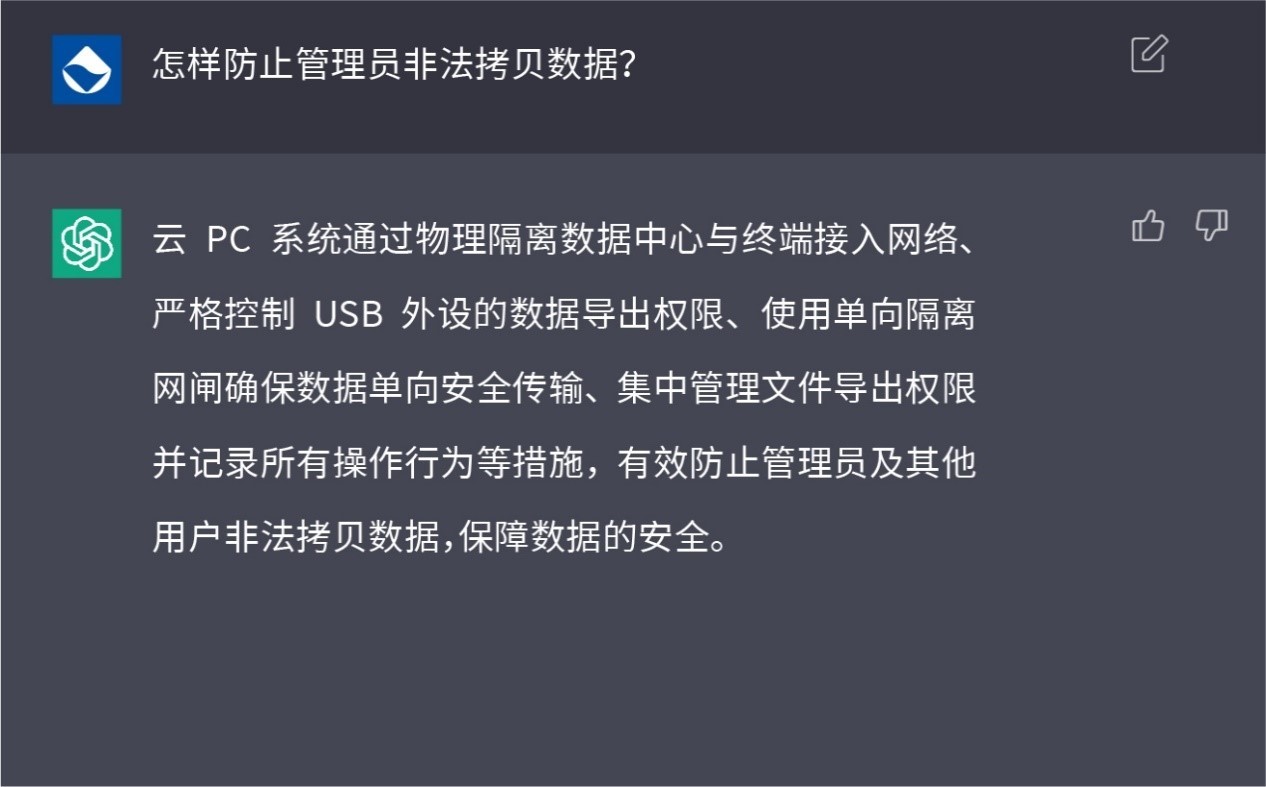 云PC系統(tǒng)通過物理隔離數(shù)據(jù)中心與終端接入網(wǎng)絡(luò)、嚴(yán)格控制USB外設(shè)的數(shù)據(jù)導(dǎo)出權(quán)限、使用單向隔離網(wǎng)閘確保數(shù)據(jù)單向安全傳輸、集中管理文件導(dǎo)出權(quán)限并記錄所有操作行為等措施,有效防止管理員及其他用戶非法拷貝數(shù)據(jù),保障數(shù)據(jù)的安全。