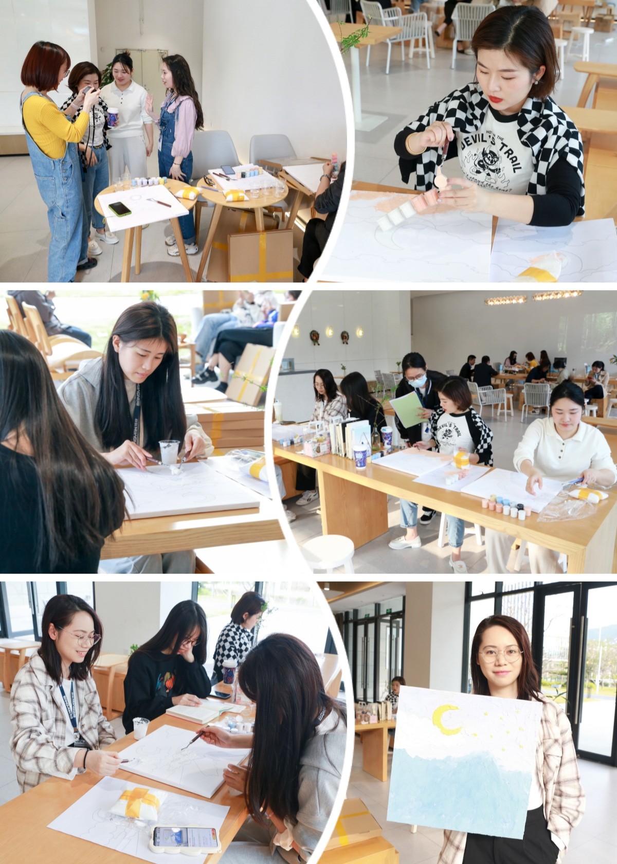 盡管公司為“女神”們備上了半天的假期,但仍然擋不住她們參與活動的熱情?;顒右潦?,咖啡廳里就涌進(jìn)了20多位“女神”,她們或?qū)W⒌剡M(jìn)行創(chuàng)作,或三五個人聚集一起分享DIY的技巧心得,歡聲笑語此起彼伏,一時間好不熱鬧。